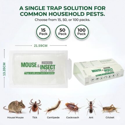 ZIVASKA Unscented Sticky Mouse & Insect Glue Traps deliver a simple, effective pest control solution without chemicals, poisoning, or unpleasant smells — perfect for busy homes. These traps use an extra-strong adhesive formula that captures mice and crawling insects instantly and prevents escape once contact is made, ensuring high effectiveness wherever pests are a concern.
